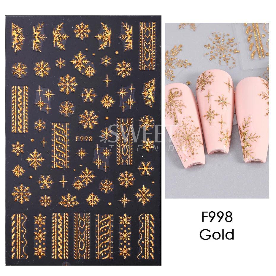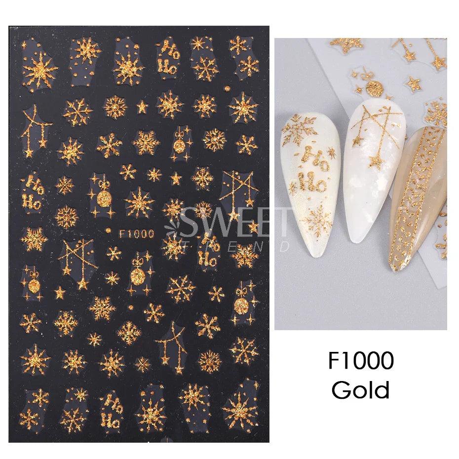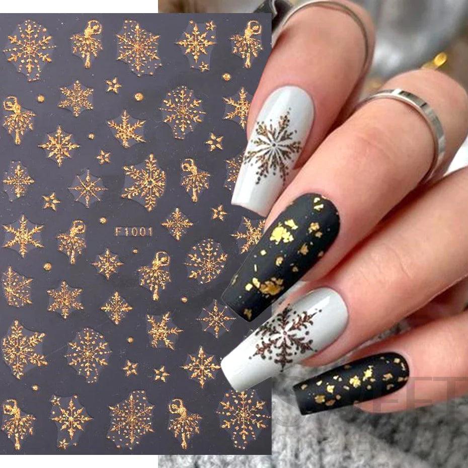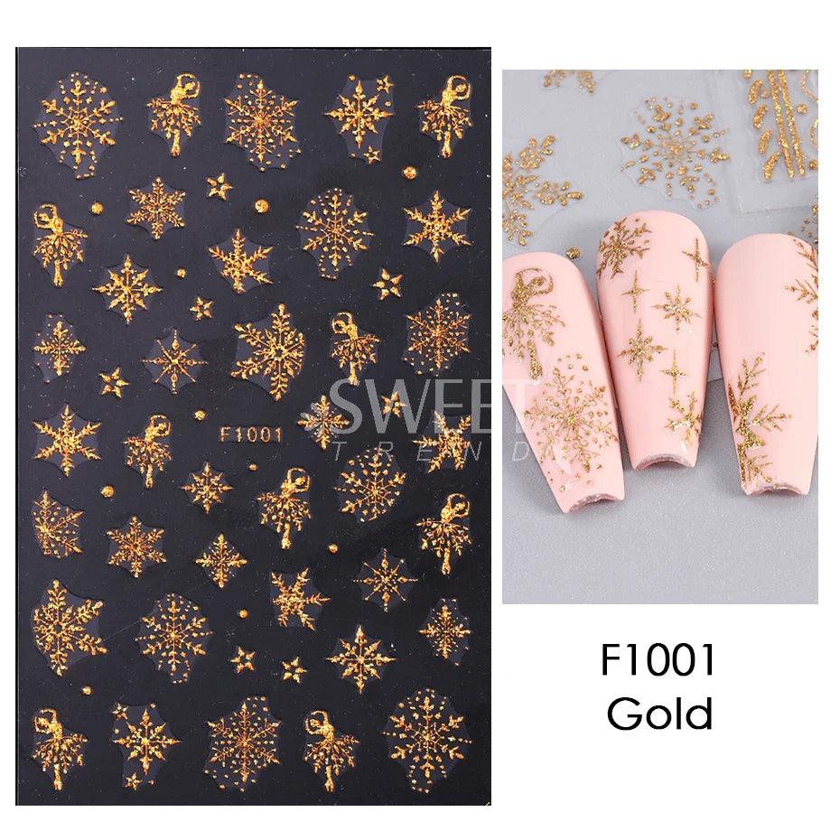 Sparkly Winter Nail Decals 3D Gold Snowflakes Trees