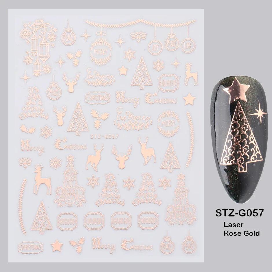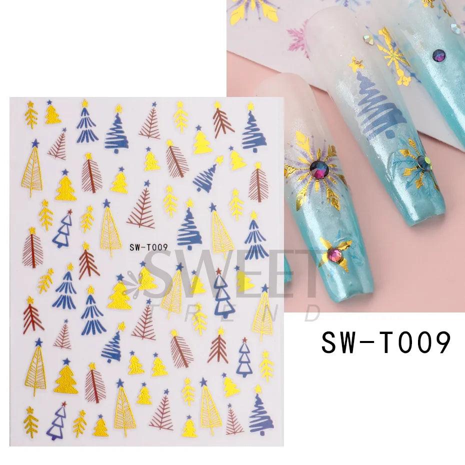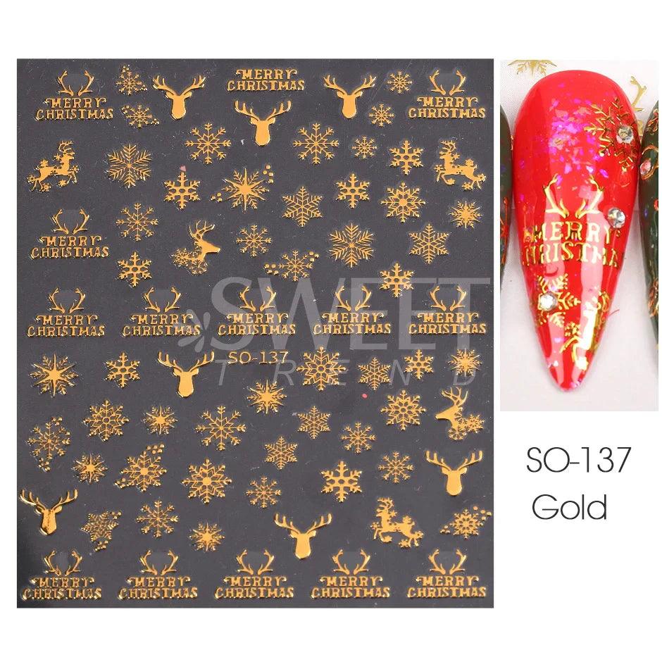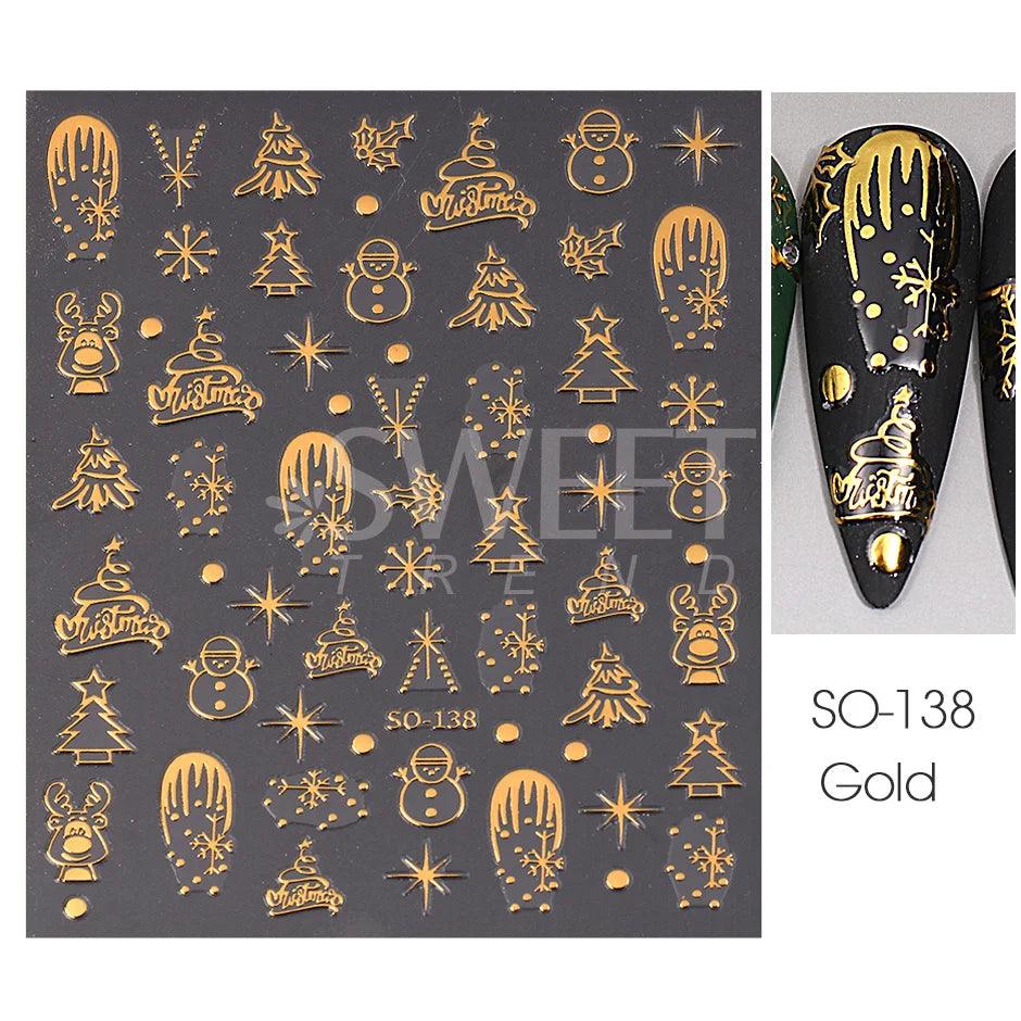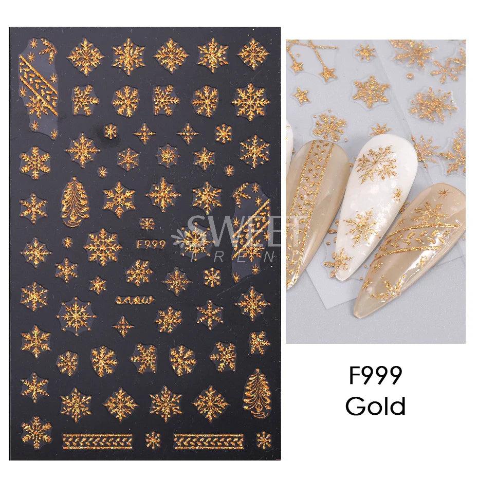 Sparkly Winter Nail Decals 3D Gold Snowflakes Trees