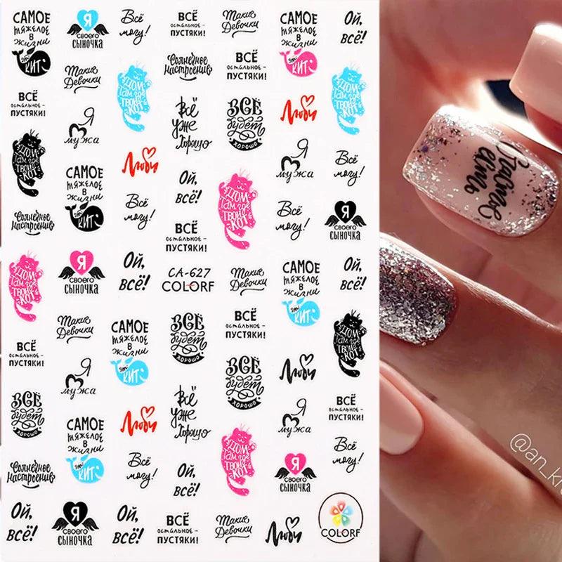 • 3D Nail Art Stickers: Enhance your nail artistry with exclusive designs that feature Russian letters and charm.