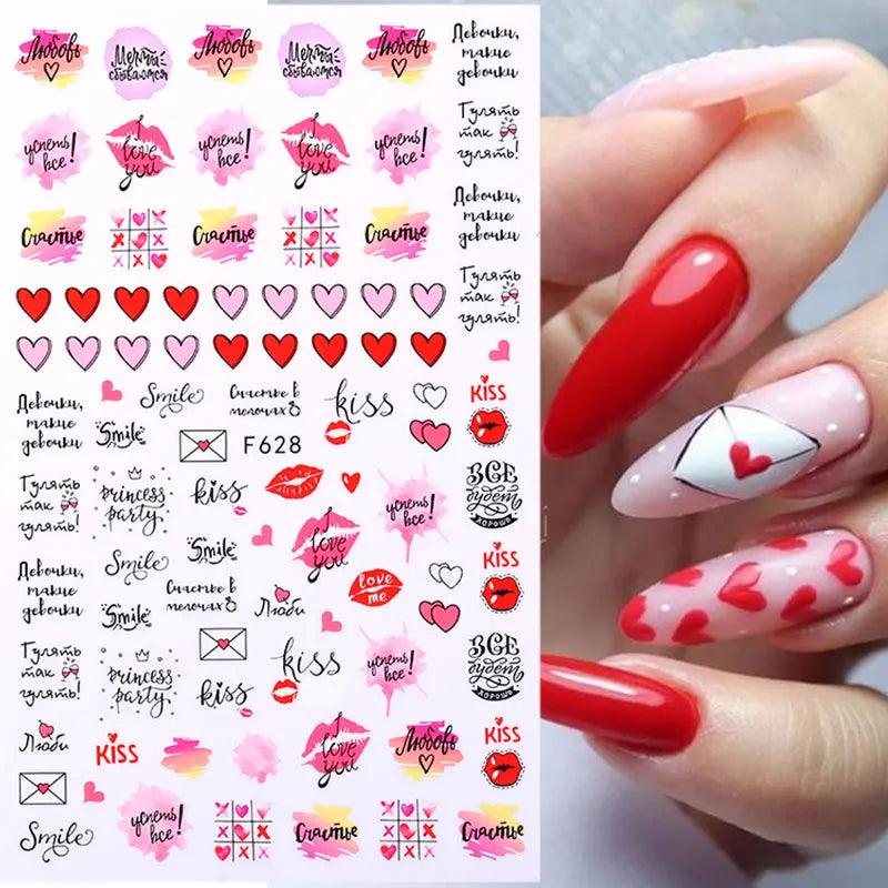 Cherry Love 3D Nail Art Sticker Set Russian Letter Decal Glam