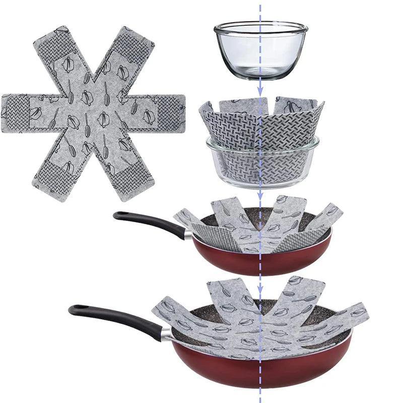 Order now and elevate your cooking space with our Gray Print Heat Insulation Pan Protectors - Cookware Divider Pads!