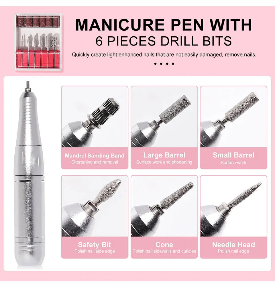 Transform your nail care routine with our 45000RPM Electric Nail Drill Machine Professional Nail Drills, the ultimate tool for achieving salon-quality nails at home or in a professional setting.