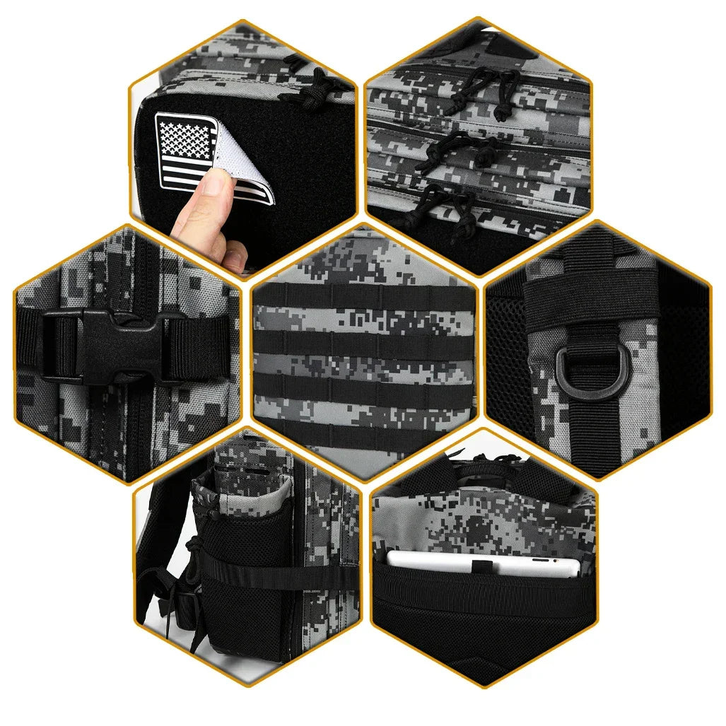 Invest in a tactical backpack that promises durability and versatility. The 45L Tactical Backpack for Men and Women with Bottle Holder is your go-to solution for all your adventures!