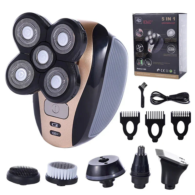 5 IN 1 4D Men's Rechargeable Bald Head Electric Shaver