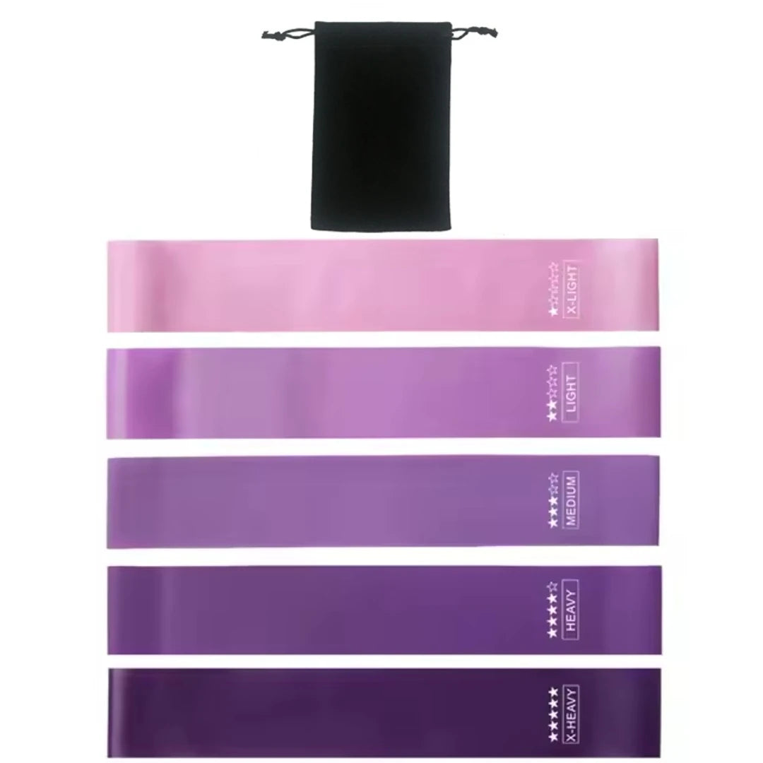 Your purchase includes five color-coded resistance bands, each clearly labeled for easy identification of resistance levels, along with a portable travel bag to keep your fitness journey organized.