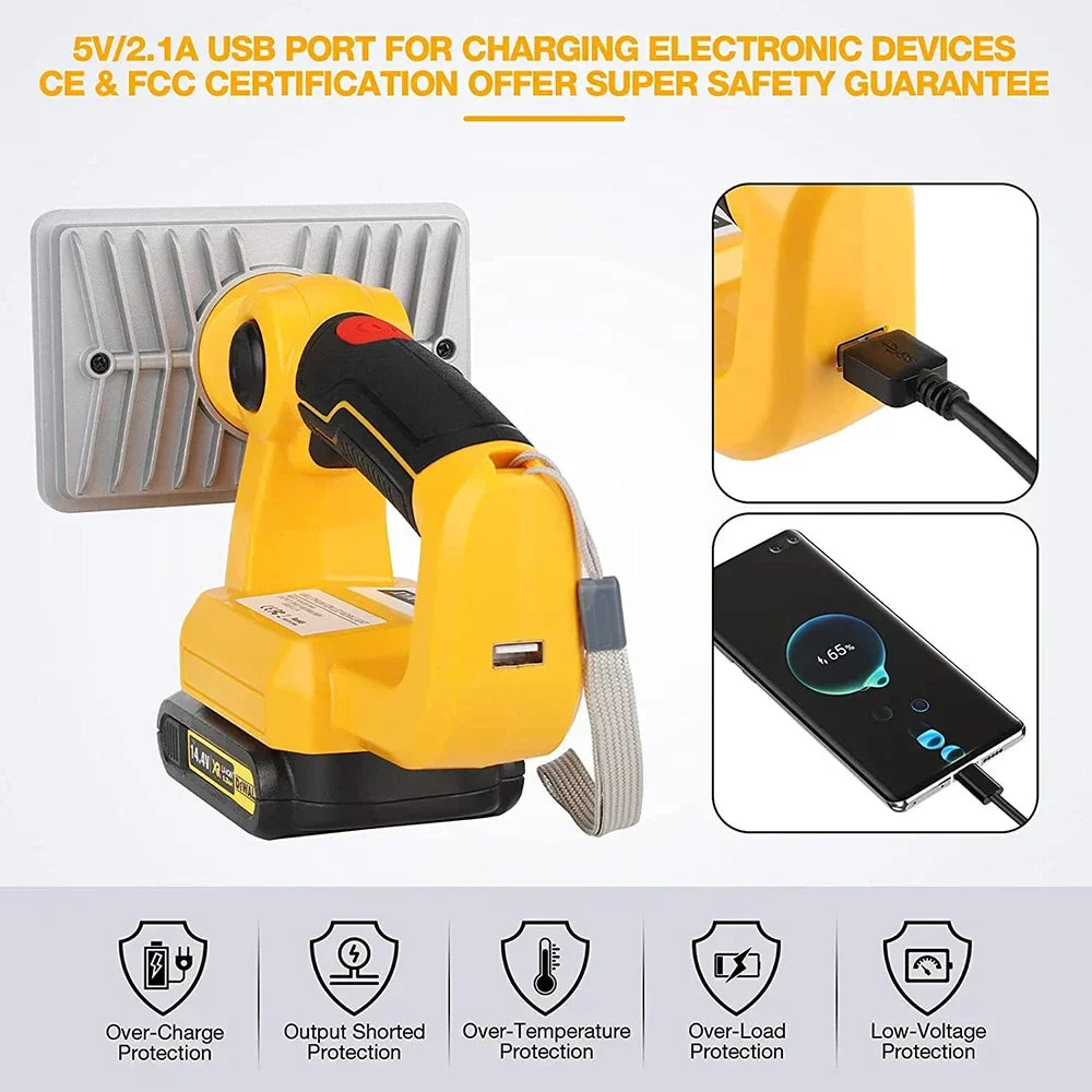 The 5 Inch 9W LED Work Light Torch for Milwaukee Makita Tools ensures you are ready for any scenario, from power outages to thrilling camping trips. This lamp is engineered for unparalleled brightness and dependable performance.