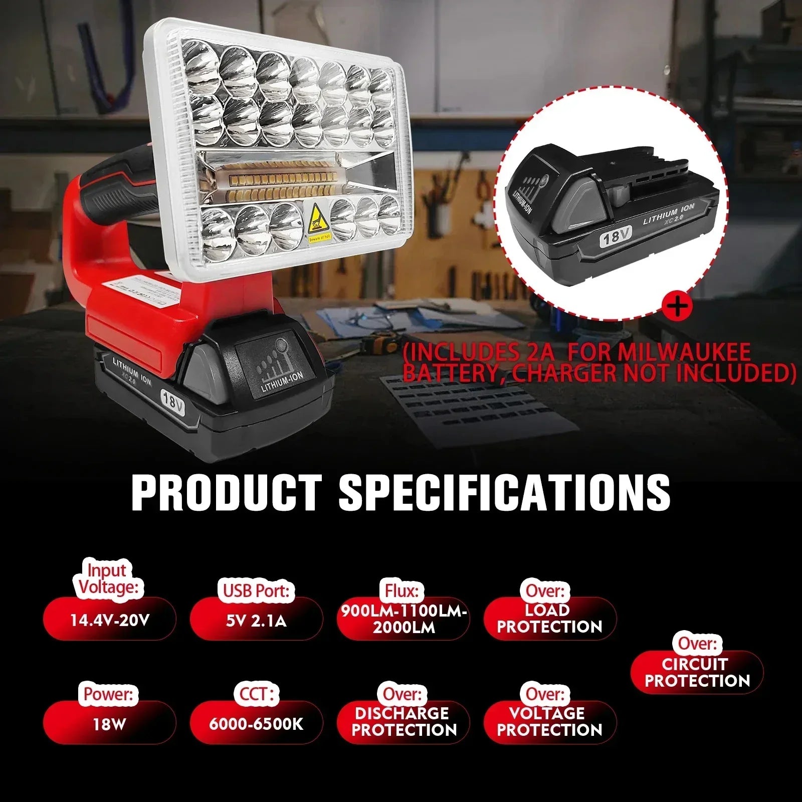 Your package includes: 1 x LED Work Light (Battery not included).
