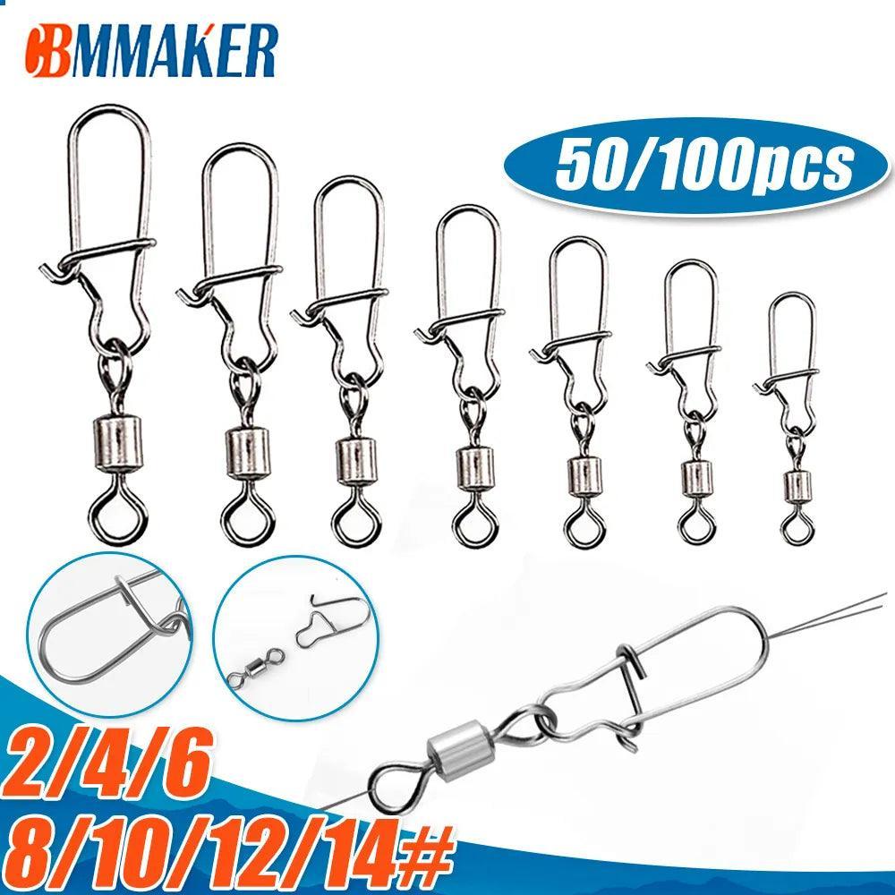 Available in packs of 50 or 100 pieces, our Sea Fishing Snap Hooks Durable Stainless Steel Connector Set is perfect for carp, sea, and lure fishing enthusiasts. Experience flexibility in your fishing techniques with these reliable connectors.