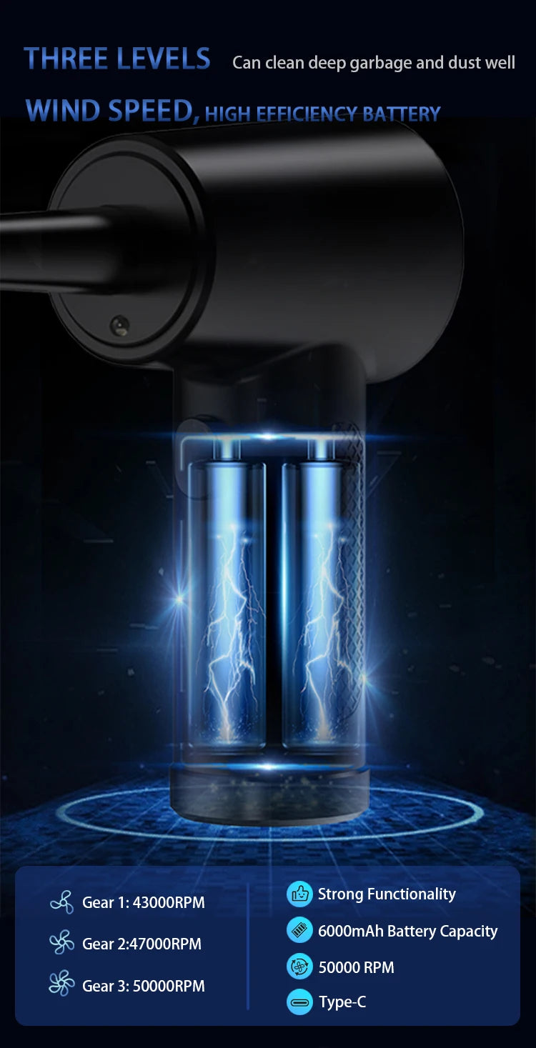 Discover the power of the 50000 RPM Compressed Air Duster Wireless Portable Cleaner, your ultimate cleaning solution designed for efficiency and convenience. This cordless, portable cleaner is perfect for tackling dust and debris in hard-to-reach areas, making it an essential tool for every tech enthusiast.