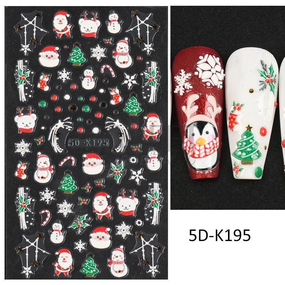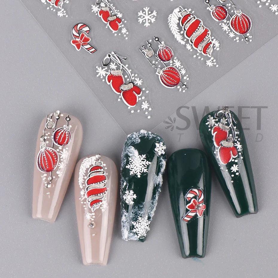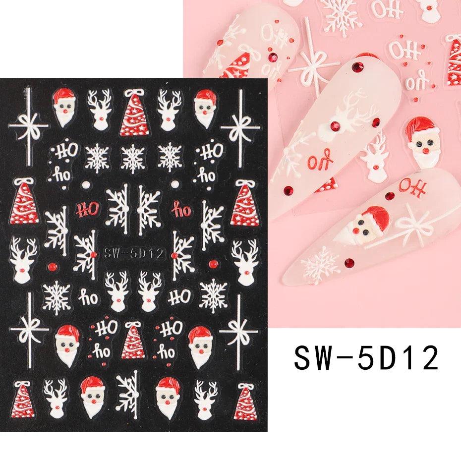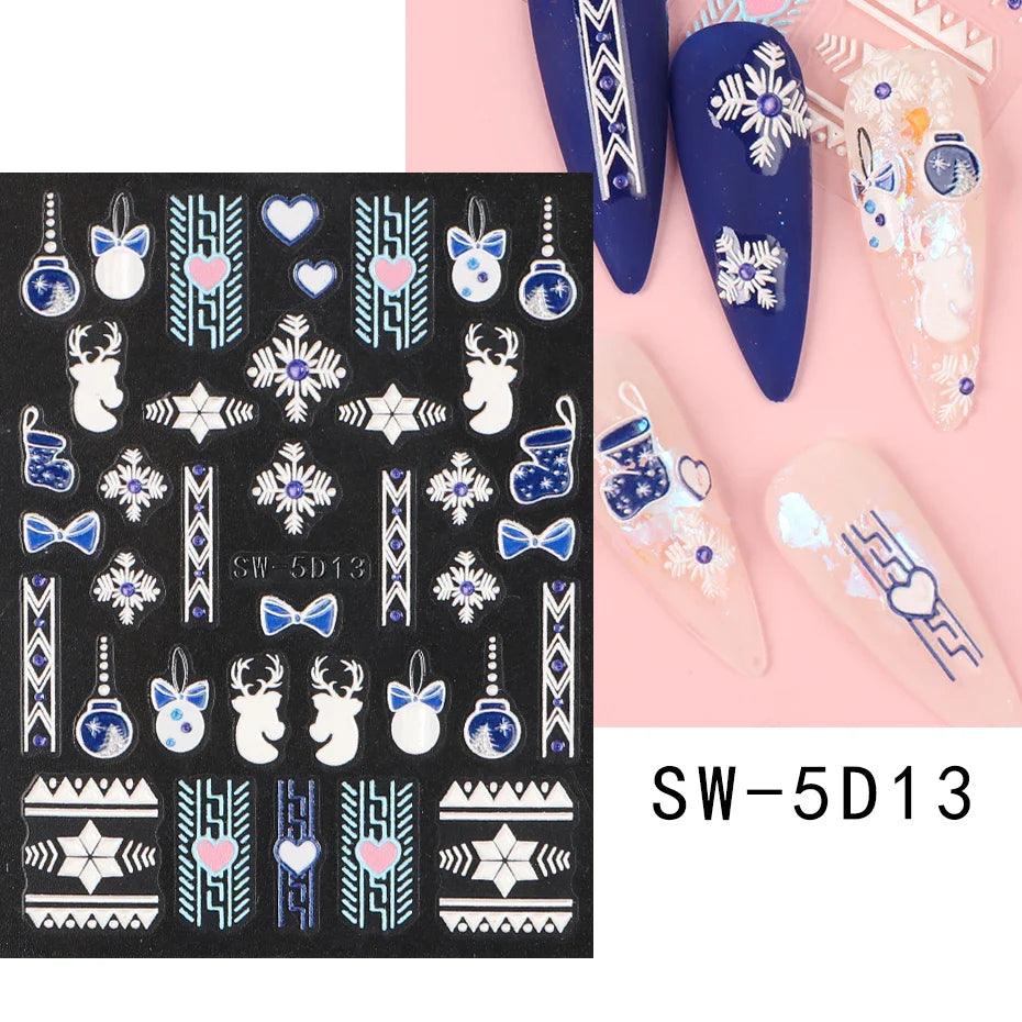 Sparkling 5D Christmas Nail Art Stickers for Winter Nails