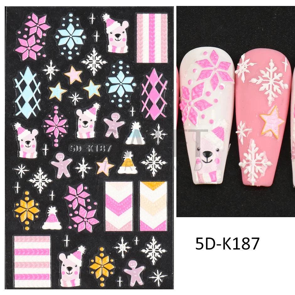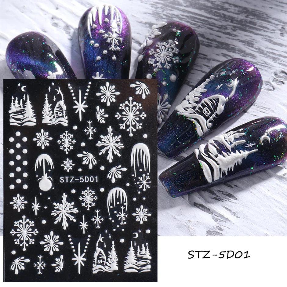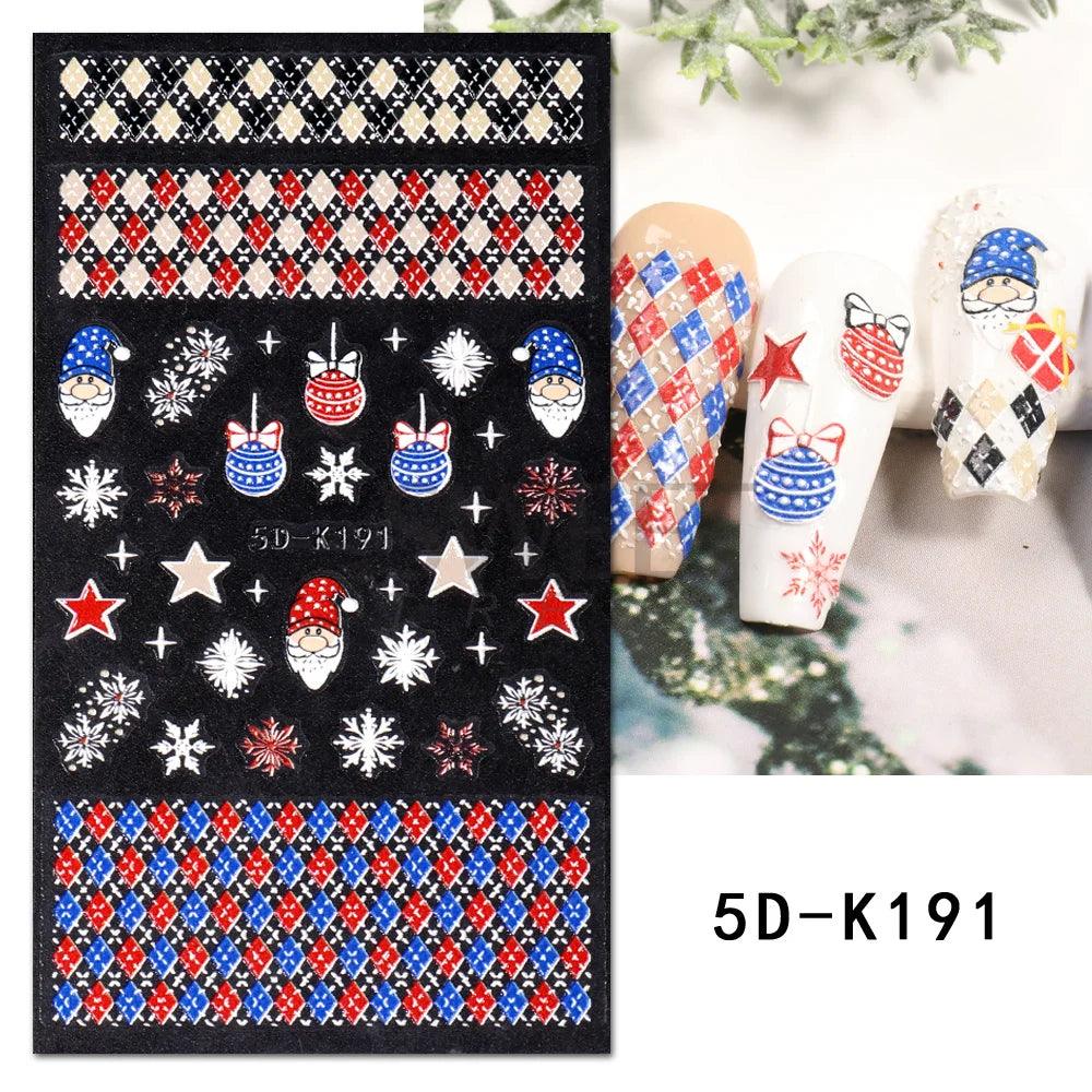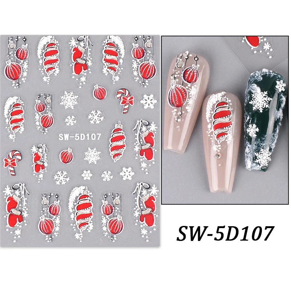 Sparkling 5D Christmas Nail Art Stickers for Winter Nails