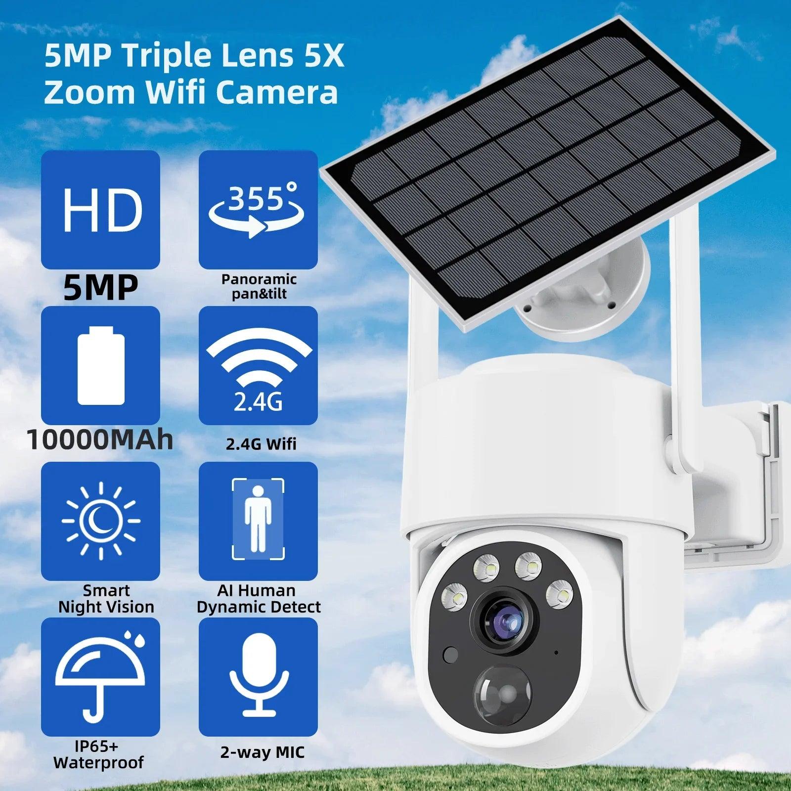 • Solar Panel: Equipped with an integrated solar panel, this eco-friendly solution powers your camera without external electricity.
