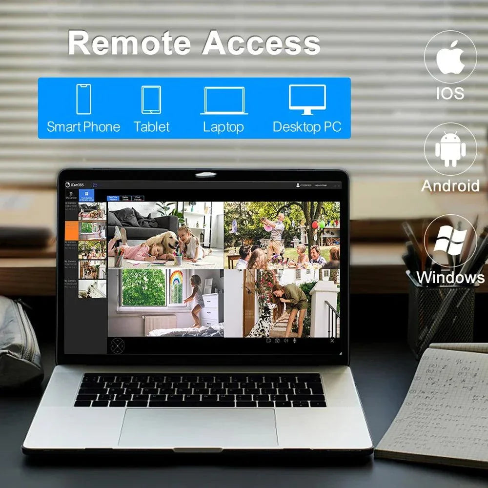 • Easy Installation: Set up effortlessly and monitor multiple feeds using "iCam365" software.