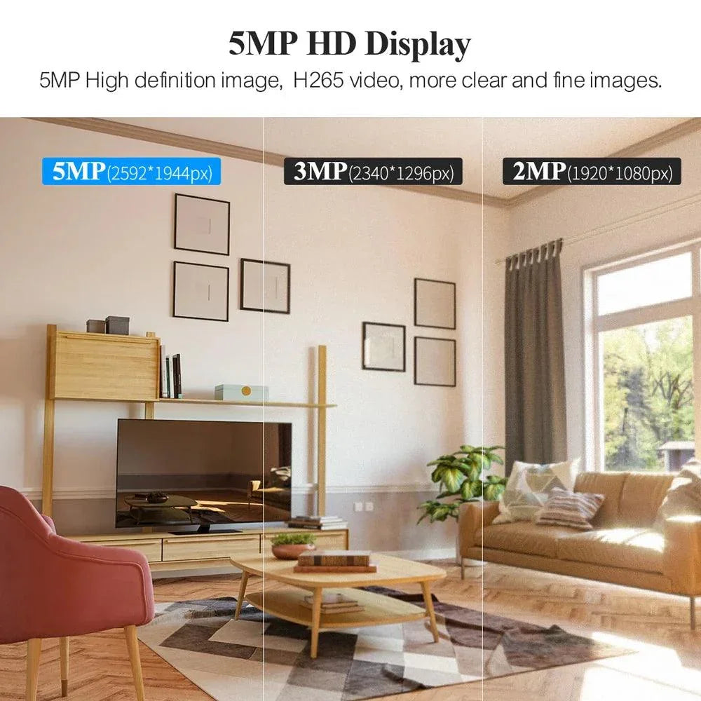 • Crystal Clear Images: Capture high-definition 5MP resolution footage for comprehensive monitoring.