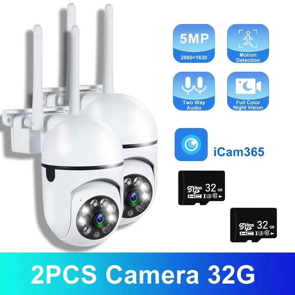 5MP Outdoor Wireless Security Camera With Night Vision delivers crisp 5MP footage, AI smart tracking, and enhanced night vision for clear color images in low light. Enjoy 2-way audio, full 355° PTZ control, instant motion alerts, and easy installation with iCam365—powered by 5G wireless reliability for safer, smarter home security.