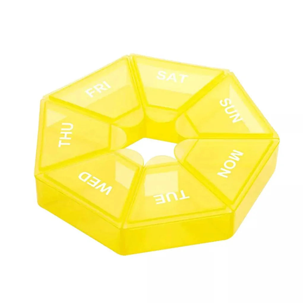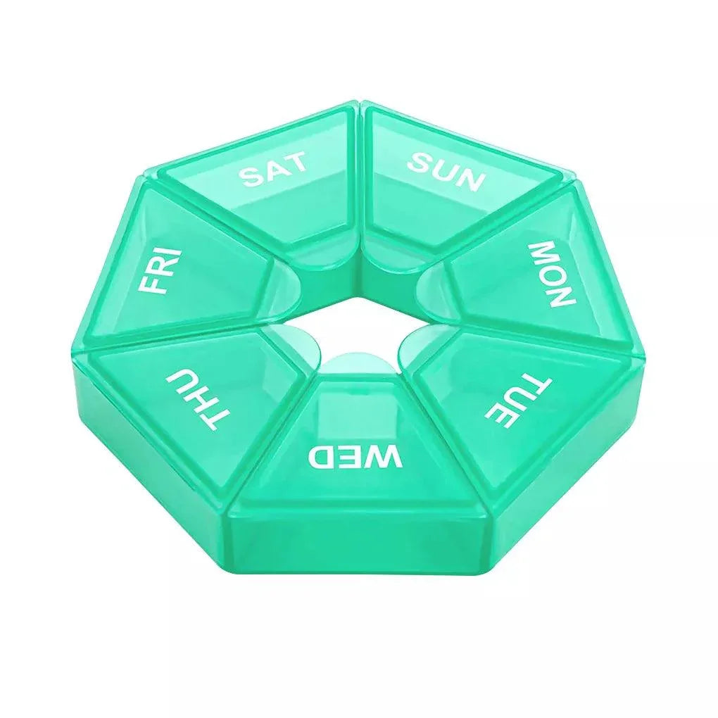 A: This 7-Day grids design segments meds by day, while the date reminder prevents missed doses. The secure lid keeps contents protected in a compact, portable tablet holder made from durable high-grade PP plastic, perfect for daily use and travel.