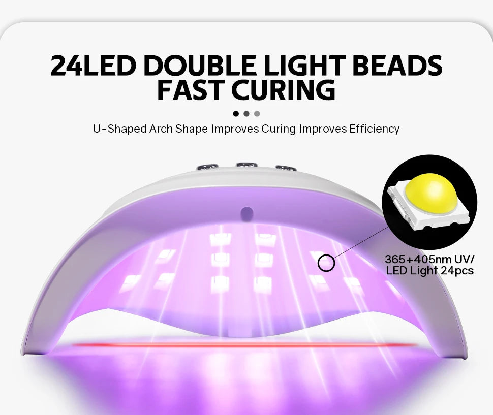 • Fast & Effective: With 24 double light source beads, this nail lamp ensures rapid curing for your entire hand or foot, including the thumb.