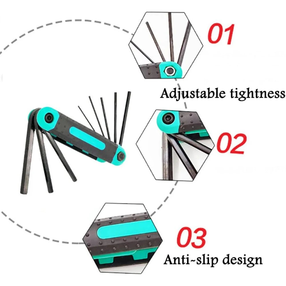The 8 In 1 Folding Hex Wrench Set not only aids various repairs but consolidates everything you need into one compact tool. Easily switch between sizes, ensuring you have the right fit for every job.