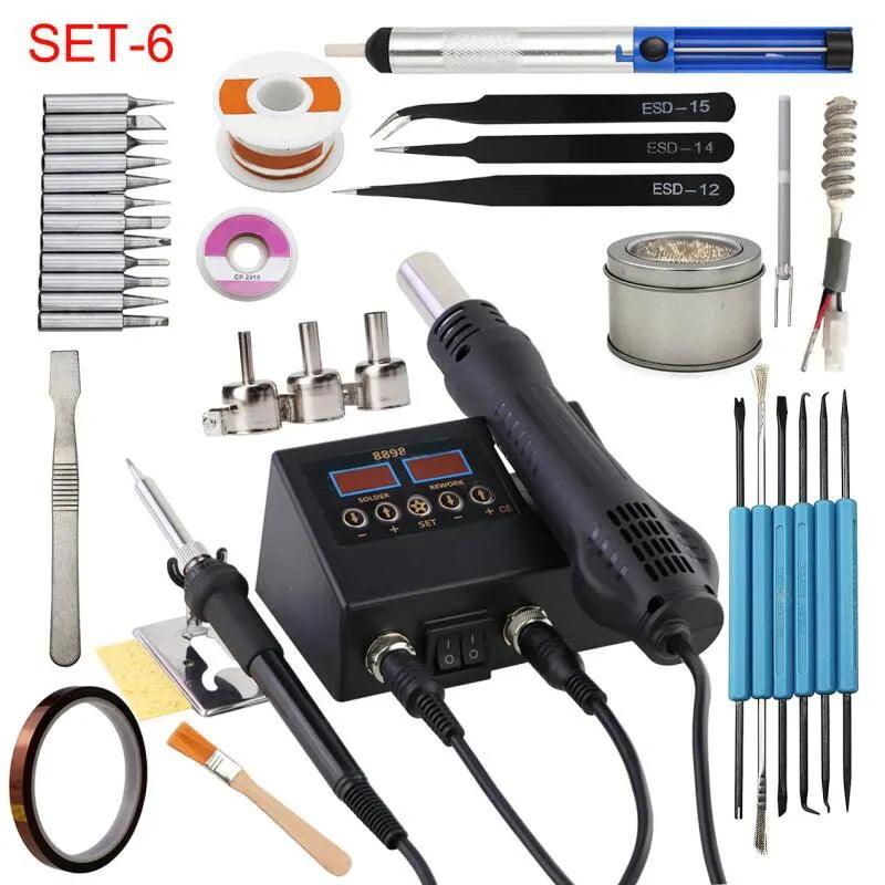 Experience unparalleled precision with the Digital Heat Gun Soldering Iron Welding Maintenance Tool Dual Display. This state-of-the-art tool seamlessly combines the functionality of a heat gun and a soldering iron, making it an essential addition to your toolkit for both professionals and DIY enthusiasts.