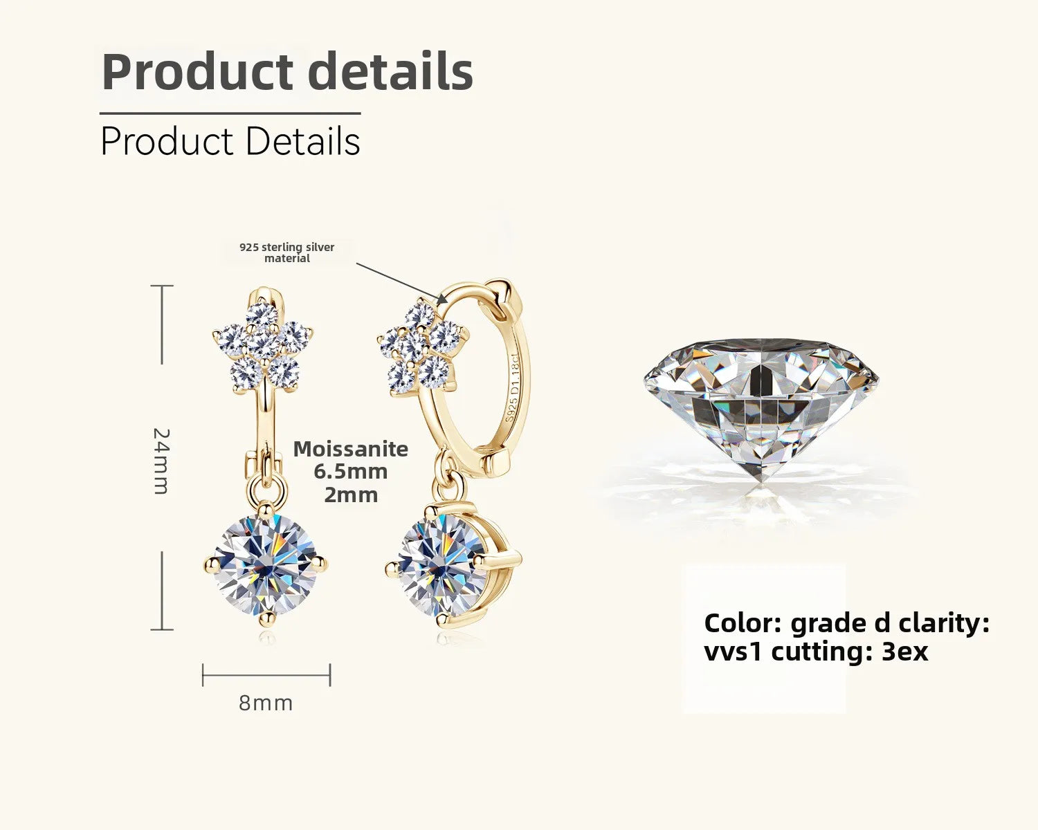 Two brilliant Moissanite stones, each 1.18 carats, anchor a delicate geometric fringe that shimmers with every movement. The result is a soft, cascading glow that reads as both modern and romantic — the kind of detail that elevates a simple look into something unforgettable. Moissanite’s fire rivals the brilliance of diamonds, while the sturdy silver setting ensures lasting polish and ease of wear from day to night.