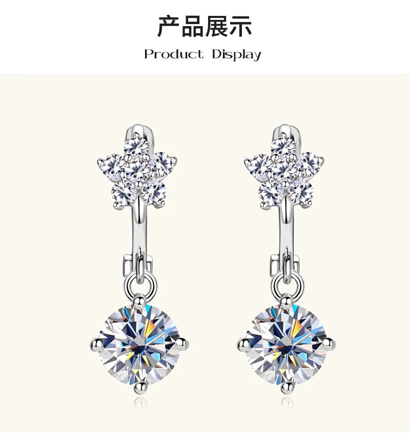 1.18 Carat S925 Silver Fringe Ear Clips Minimalist Moissanite Earrings Women