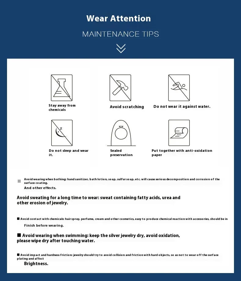 Care and longevity are simple: keep them dry, avoid harsh chemicals, wipe with a soft cloth after wear, and store in a soft pouch to prevent scratching. With proper care, the bright silhouette and pristine finish will endure for seasons to come.