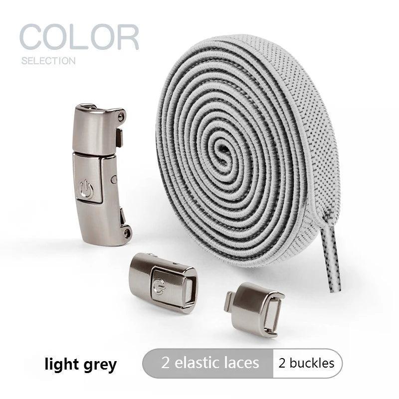 Answers: The No Tie Elastic Sneaker Laces for Effortless Style Upgrade use Press Lock Technology for quick, secure closure and a widened flat design that stays comfortable on any foot. Made from durable polyester with a robust metal buckle, they eliminate constant tying while maintaining dependable tension, so sneakers stay snug during activity.