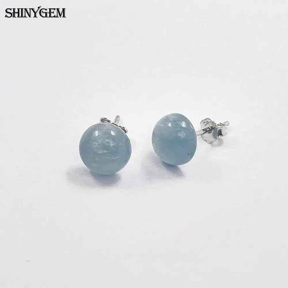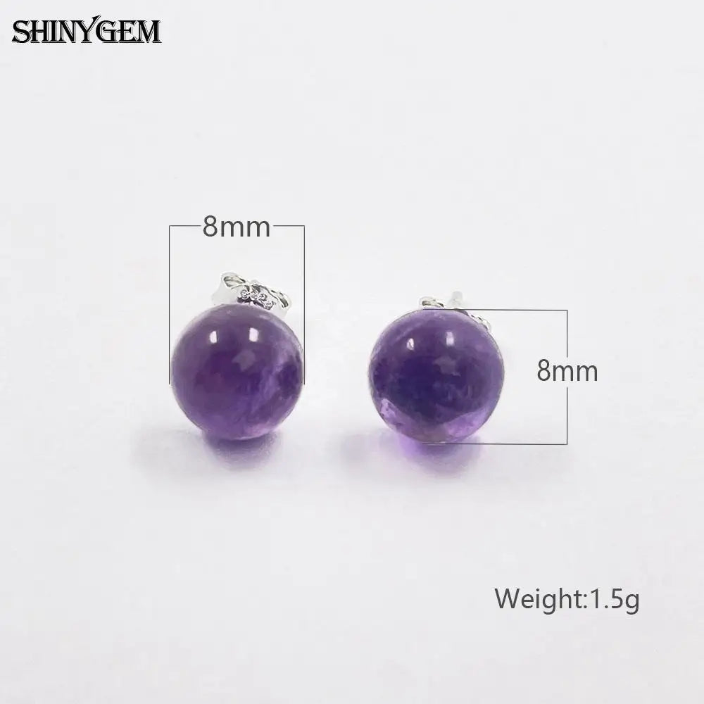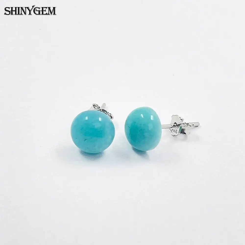 925 Silver Inlaid Natural Stone Stud Earrings Aquamarine Amethyst