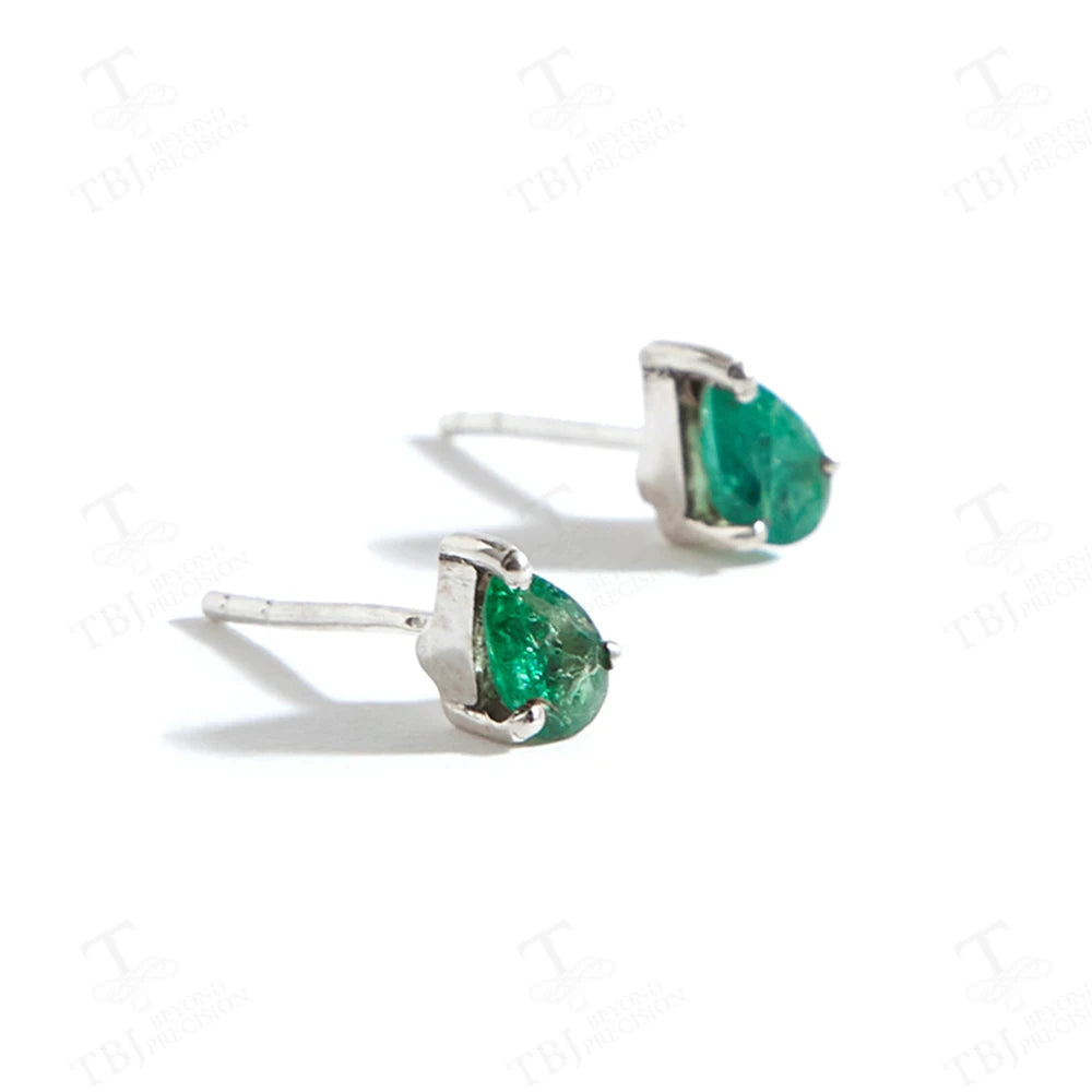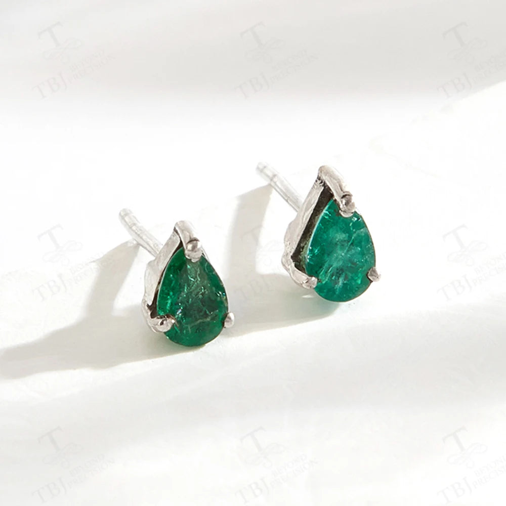 To keep their shine, wipe gently with a soft cloth after wear and store in a dry jewelry box. Avoid contact with harsh chemicals to preserve the silver's brightness and the emerald's natural beauty.