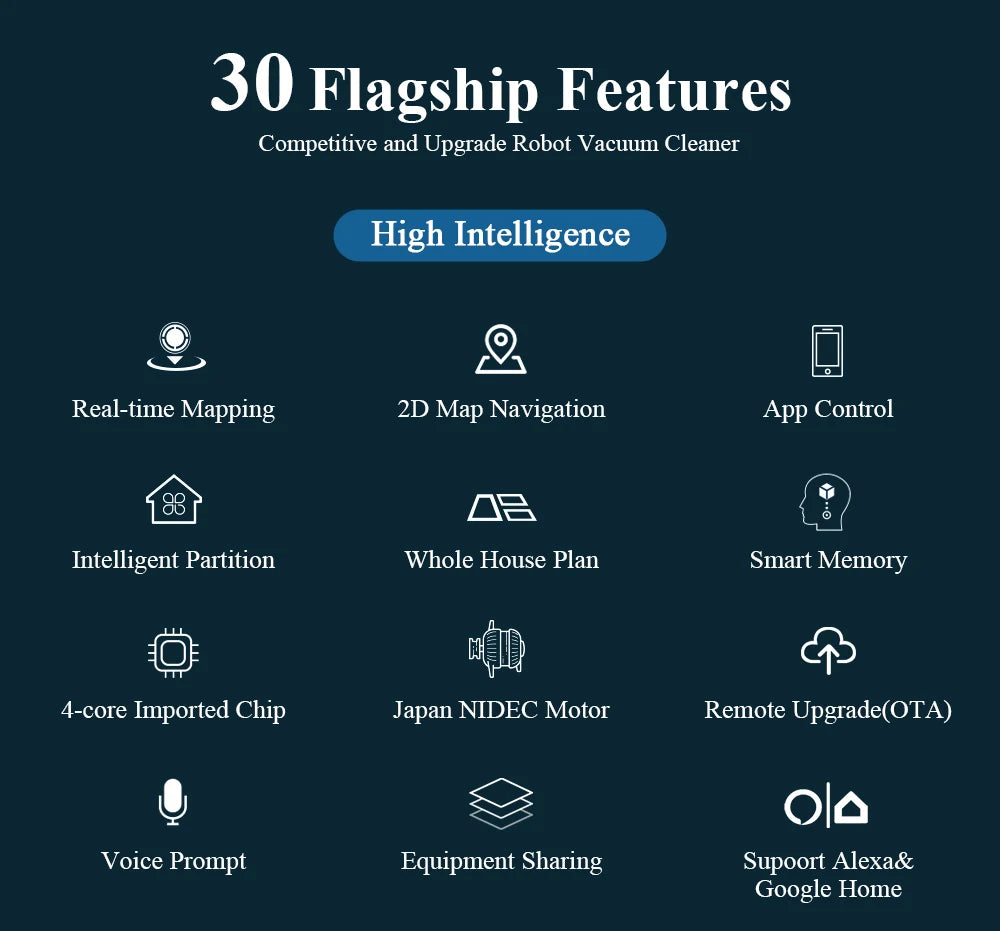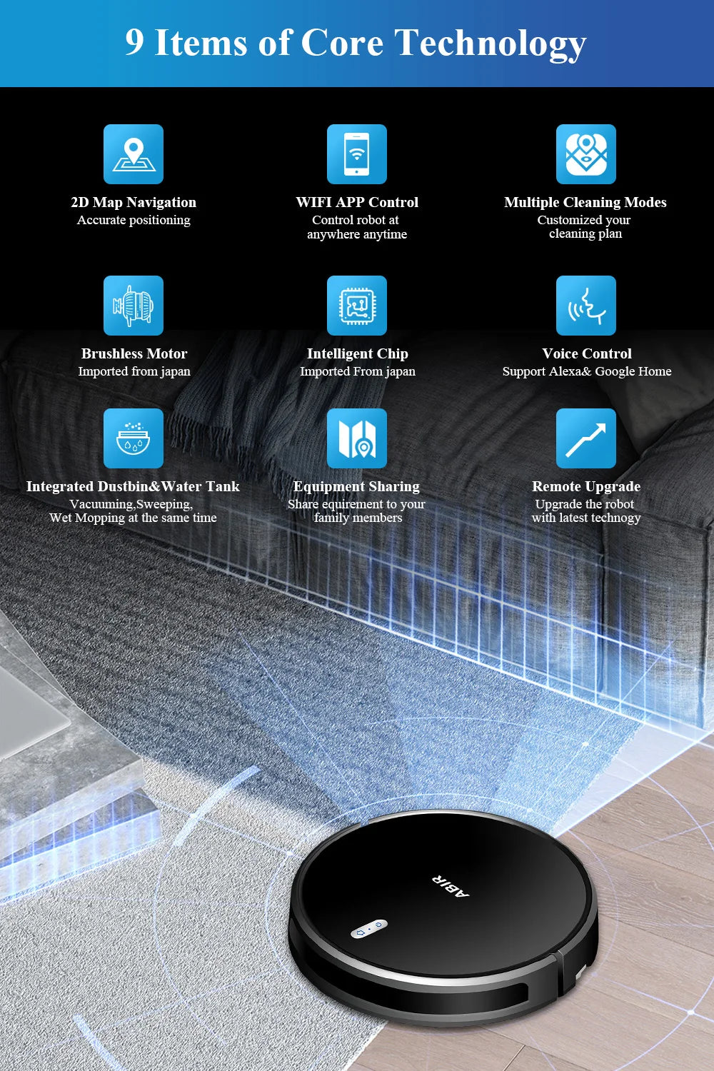 Key Features: Powerful 6000Pa suction, intelligent Map Memory, multiple cleaning modes, Electric Wet Mop function, and remote/WIFI control.