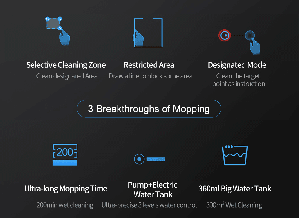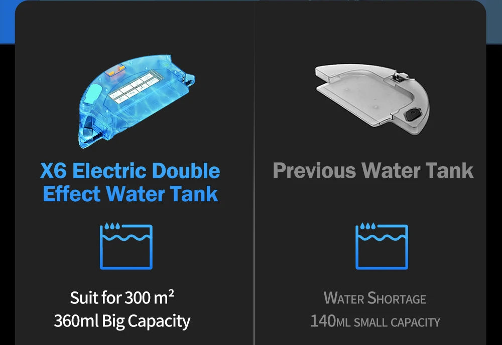 • Efficient Cleaning Capacity: A 0.6L dustbin and 360ml electric water tank facilitate extensive cleaning sessions, ideal for spaces up to 200 m².