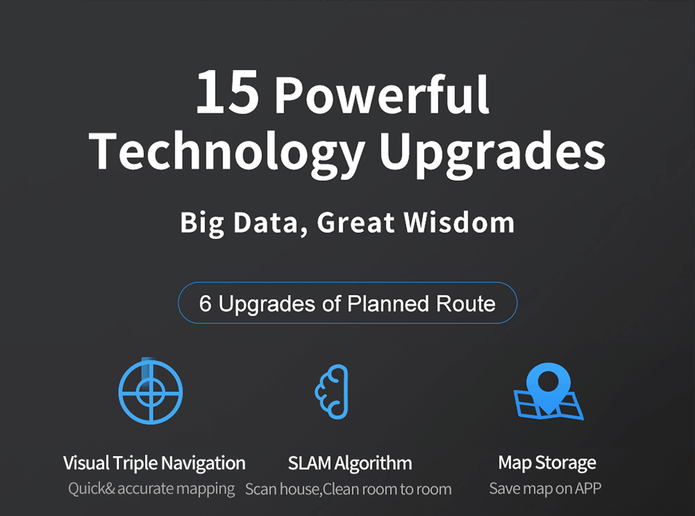 • Visual Navigation Technology: The innovative Camera + VSLAM + SLAM Triple Navigation System ensures precise mapping and optimal cleaning routes, outperforming traditional models.