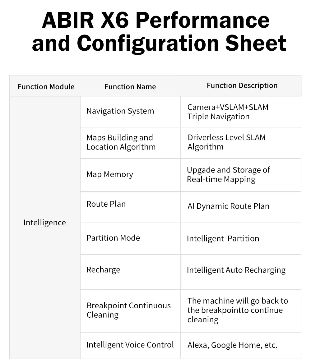 • Smart Home Integration: Control your ABIR X6 conveniently with voice commands through Alexa or Google Home for a seamless smart home experience.