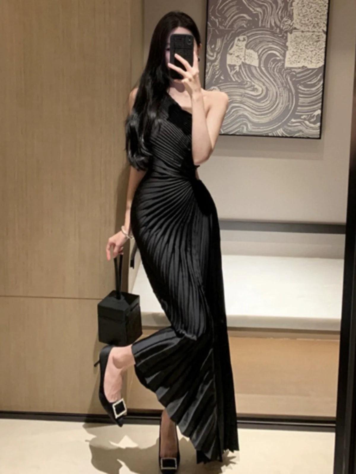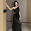 Accessible Luxury One Shoulder Pleated Dress Elegant Attire