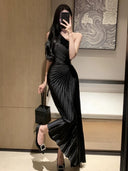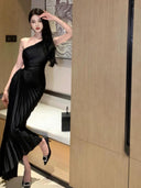 Elevate your wardrobe with the Accessible Luxury One Shoulder Pleated Dress Elegant Attire, the perfect fusion of style and comfort for the modern woman. Designed to turn heads, this dress is your ultimate choice for any special occasion.