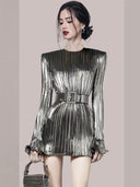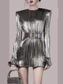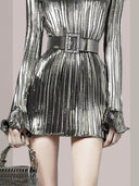 Step into the limelight this autumn with our Luxurious Silver Pleated Dress for Sophisticated Fall Elegance, designed to make a bold fashion statement. This dress is the epitome of elegance and sophistication, perfect for those who wish to embrace the beauty of the fall season.