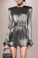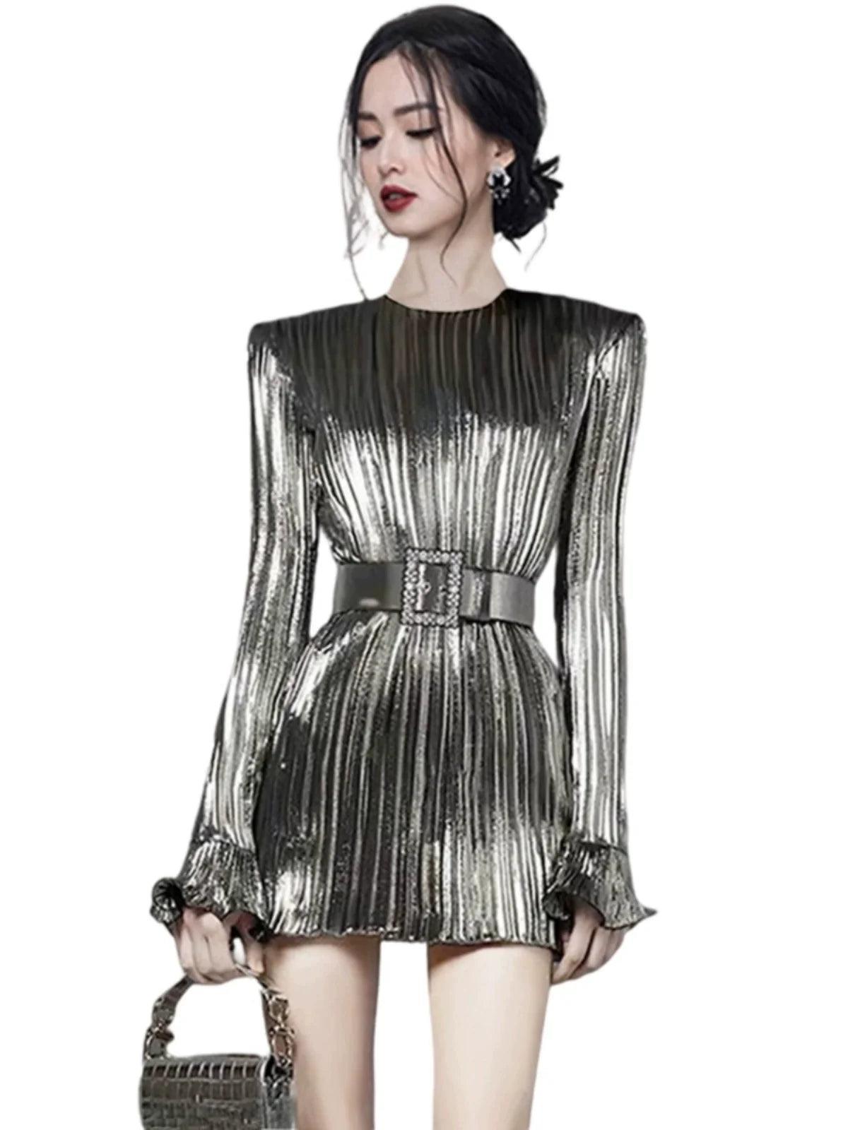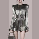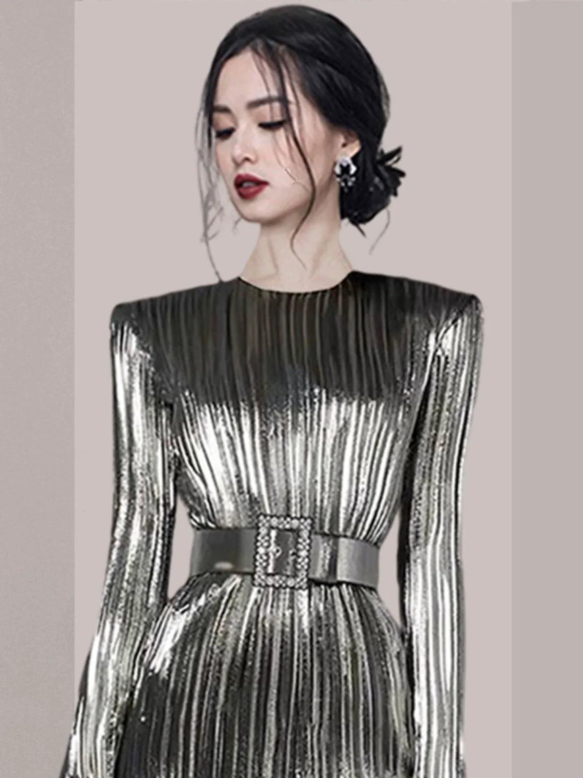 Luxurious Silver Pleated Dress for Sophisticated Fall Elegance