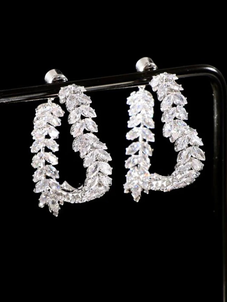 #2048230563033989-Silver zircon wheat ear front and back earrings(Silver needle)