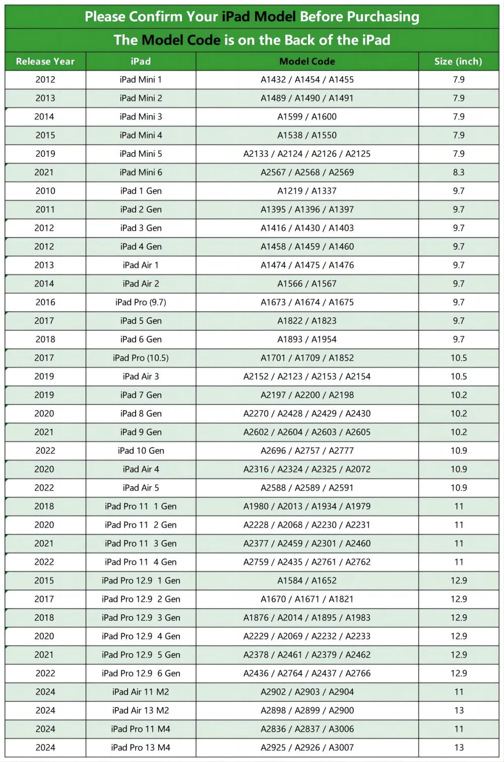 • 6. Compatibility: Designed to fit a variety of models, including 2024 iPad Air M2 Pro M4, iPad Air 4/5, and more.