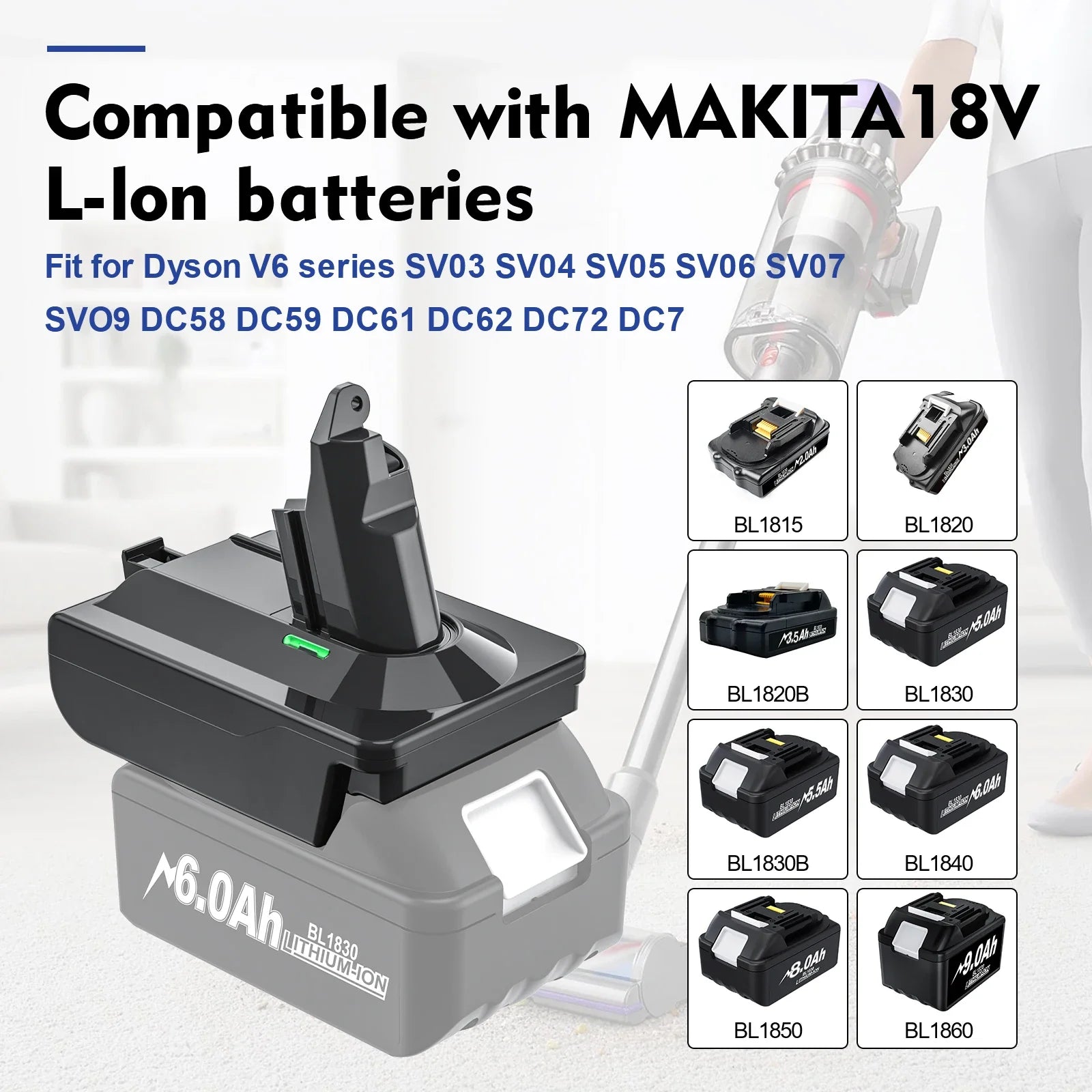 Adapter For Makita Dewalt Milwaukee 18V Battery Converter To Dyson V6 V7 V8