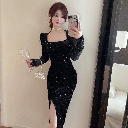 Bronzing Velvet Banquet Dress Luxurious Winter Elegance