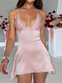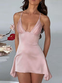 Sleek Satin V-Neck Summer Dress Bold and Backless Elegance