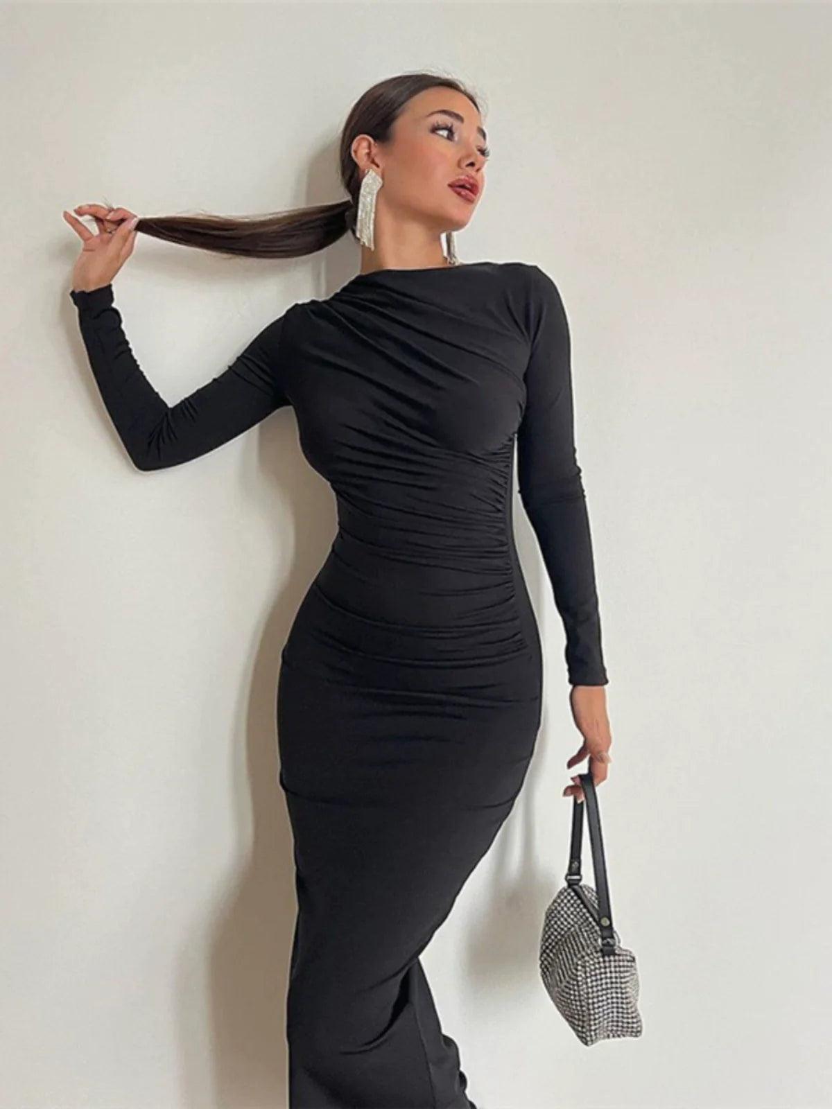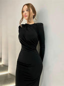 Designed to keep you stylish during spring, autumn, and winter, this versatile dress can be paired with your favorite blazer for a chic office look or worn alone for evenings out.