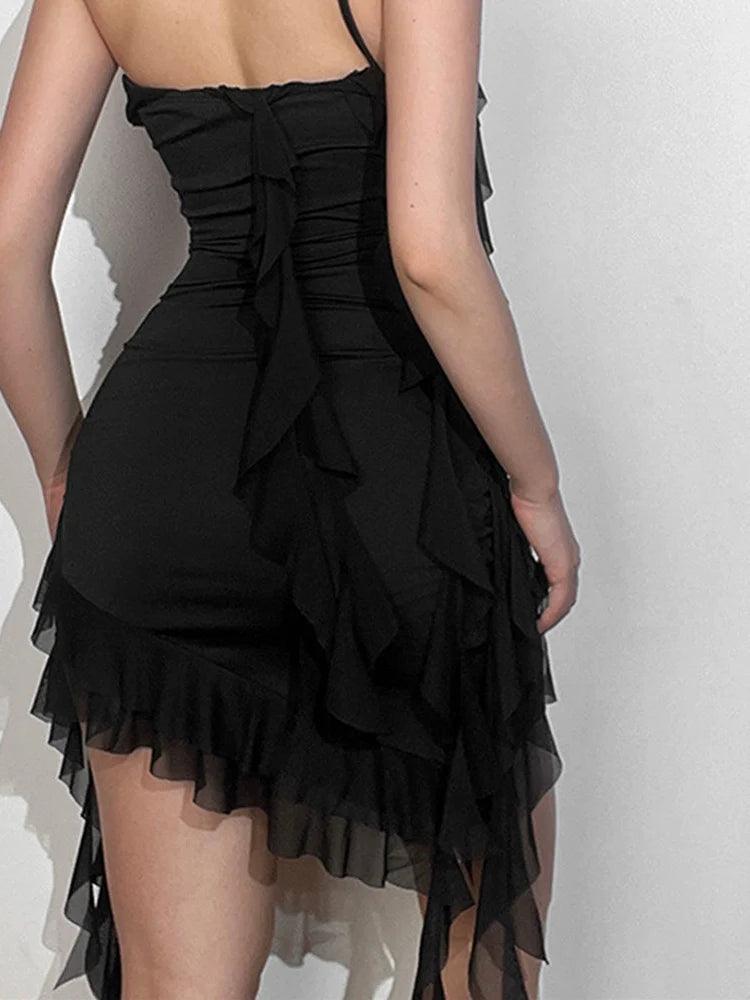 Flounce Peplum Black Dress: Elegant Backless Style Appeal