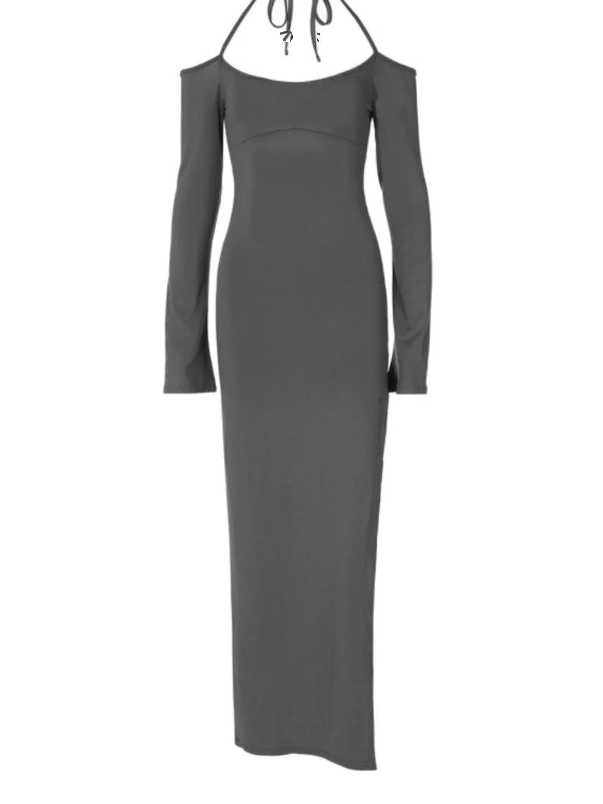 With its form-fitting high waist and long sleeves, this dress is an excellent choice for the upcoming autumn season. The trendy exposed back with strap detailing adds a modern twist to this timeless piece.