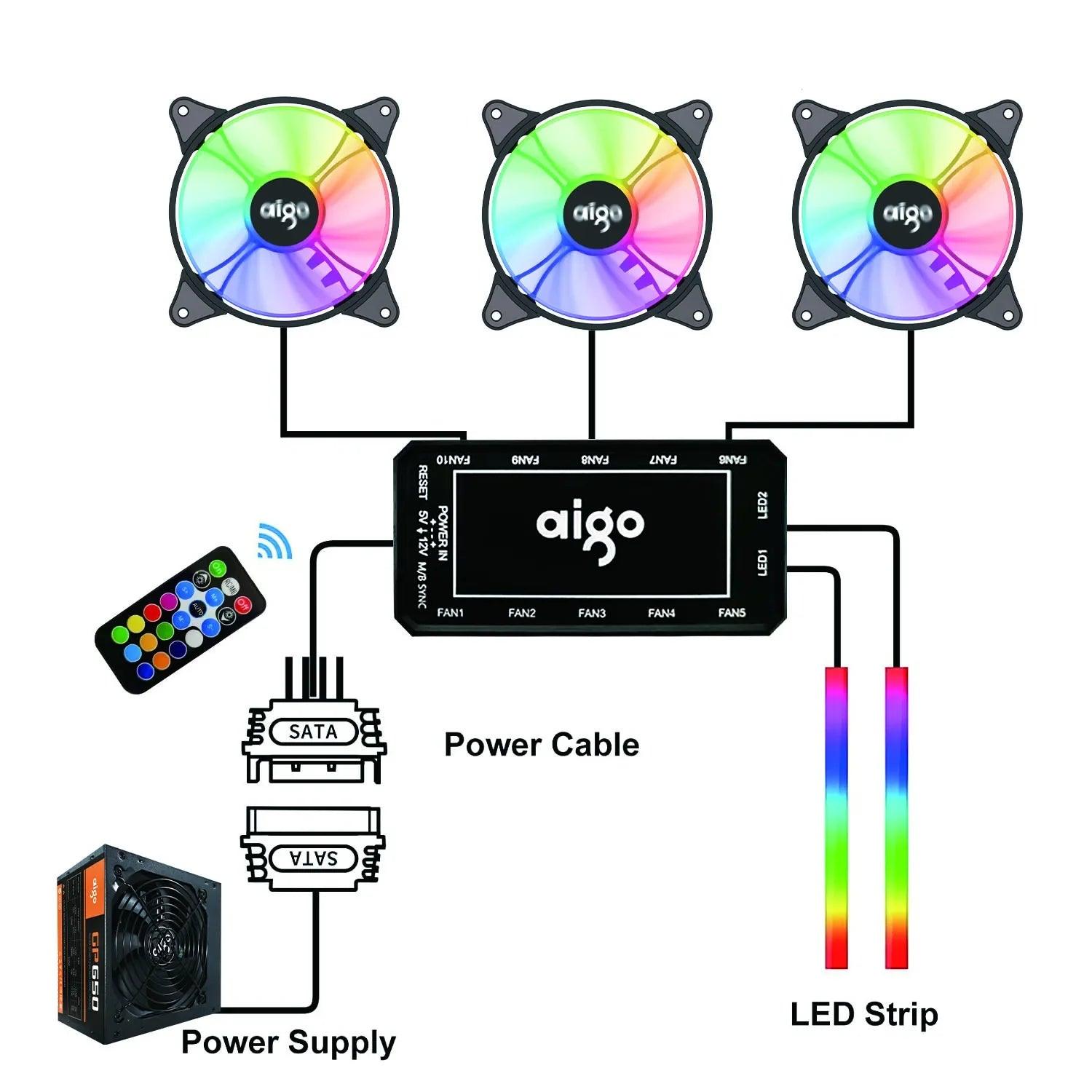 Aigo AR12 RGB PC Case Fan Upgrade Cooling with Colorful Lights