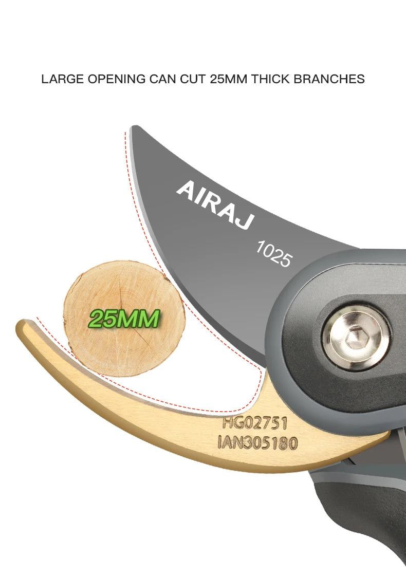 Introducing the AIRAJ Industrial Grade Pruning Shears Are Labor-Saving Tools, the essential gardening companion for both professionals and hobbyists. With these shears, you can elevate your gardening experience while minimizing effort and maximizing efficiency.