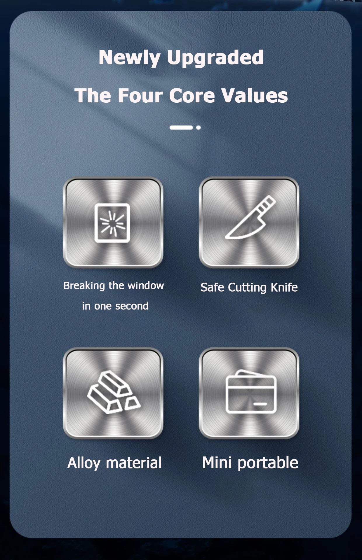 • Window Breaker: Features a powerful window-breaking tool for quick escapes during emergencies, giving you peace of mind while traveling.