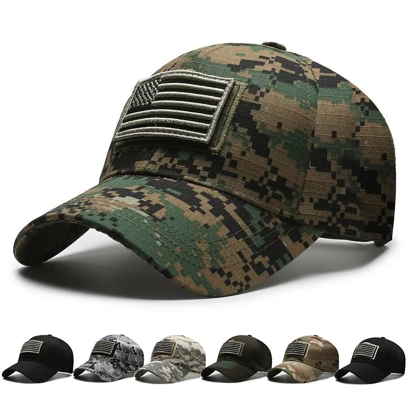 Discover our collection of caps and accessories that match your adventurous spirit. Shop now for the American Flag Camouflage Sticker Embroidered Cap for Men and more!