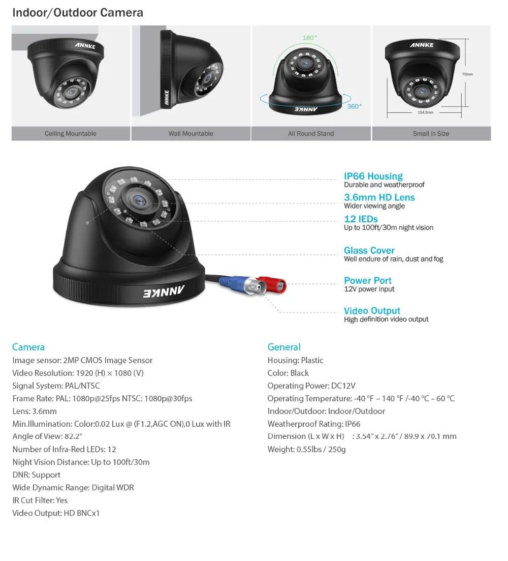 The Annke 1080P HD TVI Surveillance Camera Dome Outdoor CCTV is engineered for both indoor and outdoor settings: